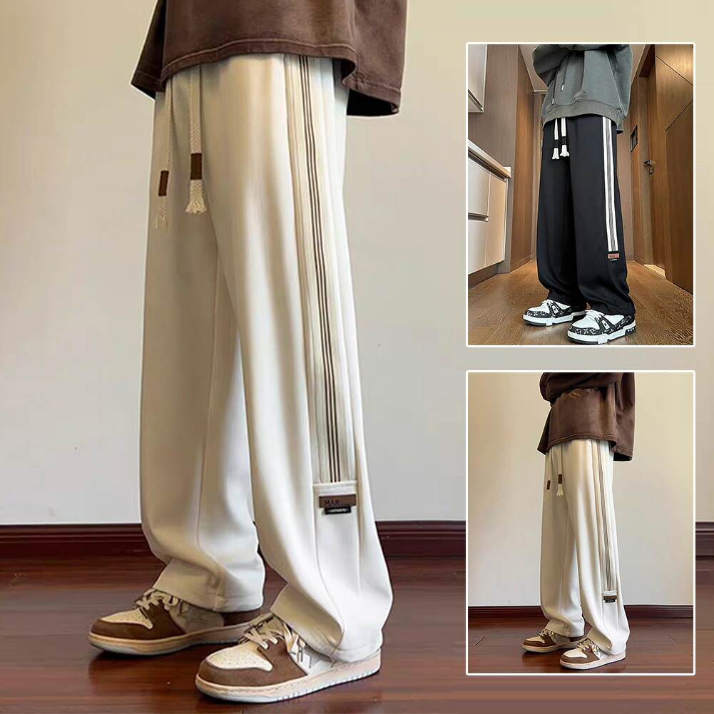55%OFF ワイドパンツ ジョガーパンツ メンズ スウェットパンツ ストライプ ストリート ストレートレッグ 部屋着 ルームウェア ワイドレッグ ユニセックス 薄手ワイドフィット ル スポーツパンツ