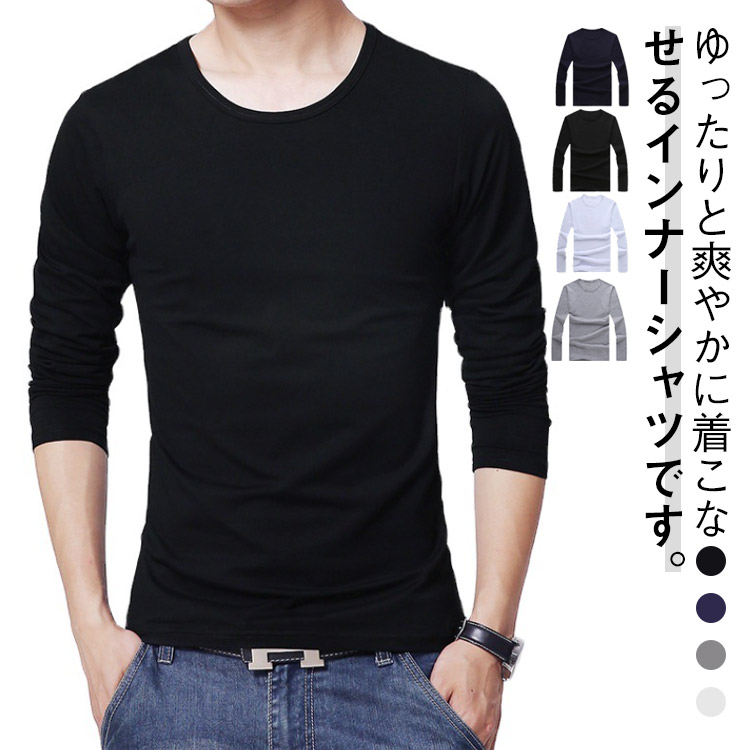 -5!無地 プルオーバー 薄手 インナー スリム カジュアル 大きいサイズ ホワイト ブラック グレー ネイビー