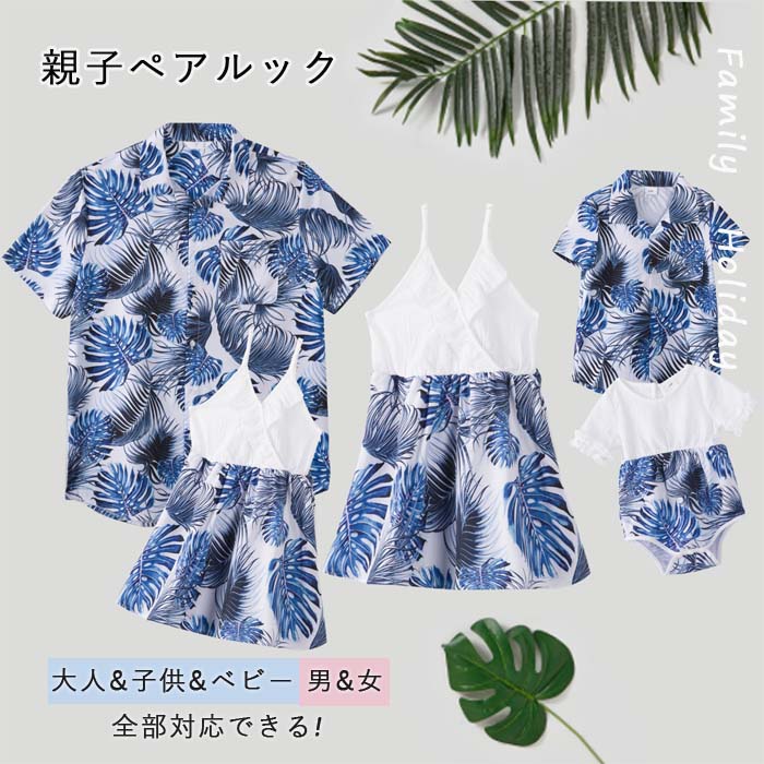 親子 ペアルック 赤ちゃん お揃い 親子ペア 親子コーデ リンクコーデ セット アロハシャツ キッズ シャツ メンズ レディース ワンピース ベビー ロンパース 男の子 子供 親子お揃い 女の子
